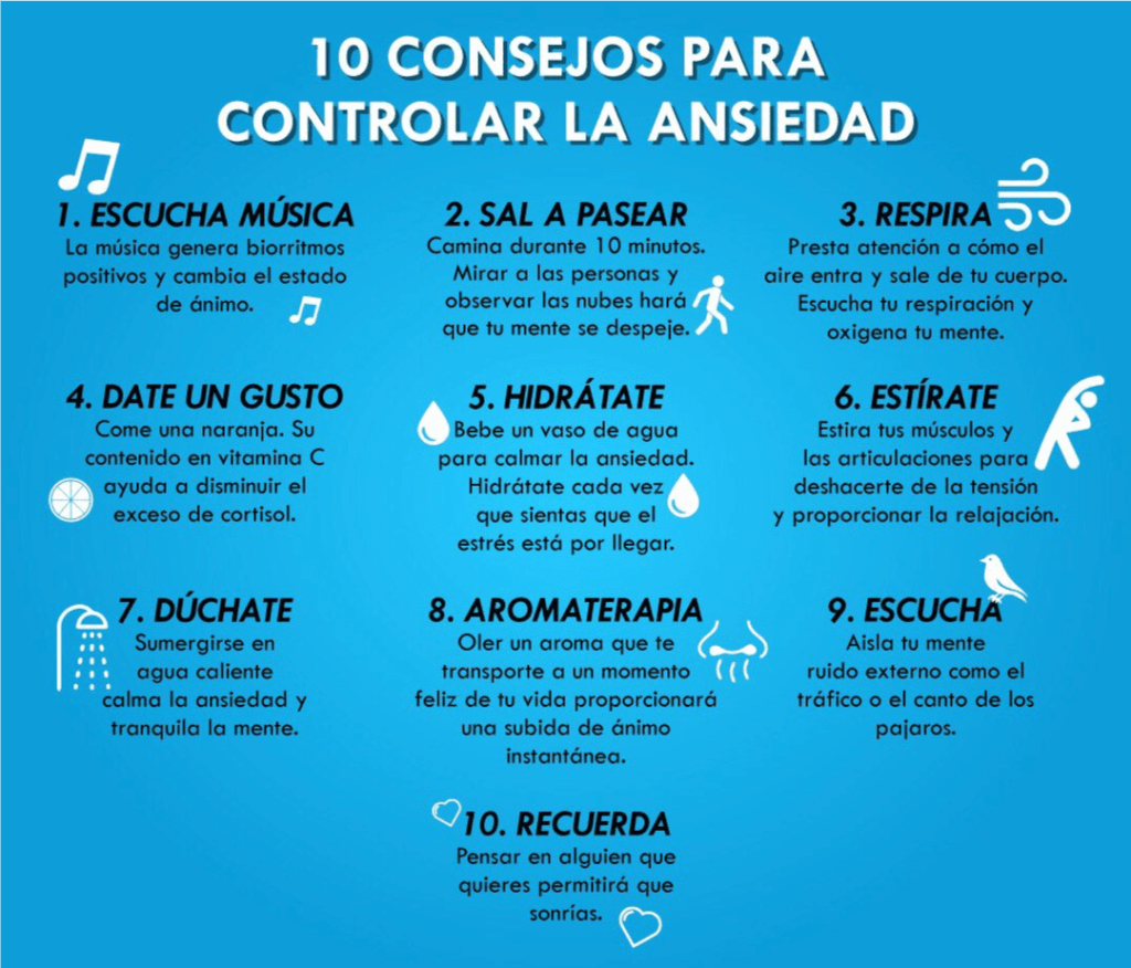 Aquí 10 consejos para controlar la ansiedad: