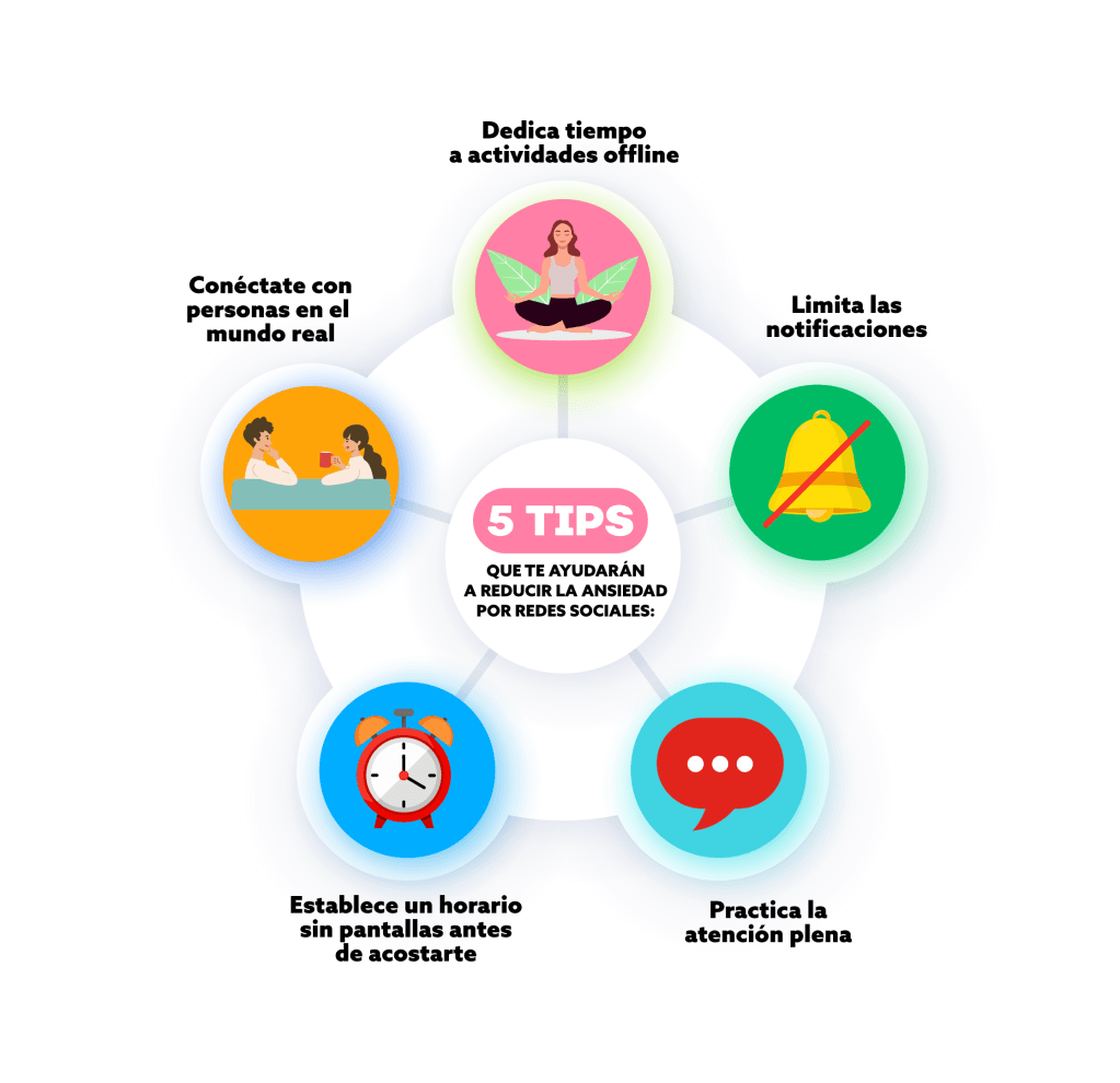 A continuación, te dejamos algunos tips que puedes seguir para prevenir y disminuir la ansiedad ocasionada por estas herramientas: