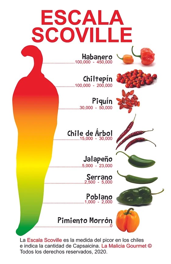- La Escala Scoville es la medida de picor o pungencia en los chiles. El número de unidades Scoville (SHU, del inglés Scoville Heat Units) indica la cantidad presente de capsaicina.